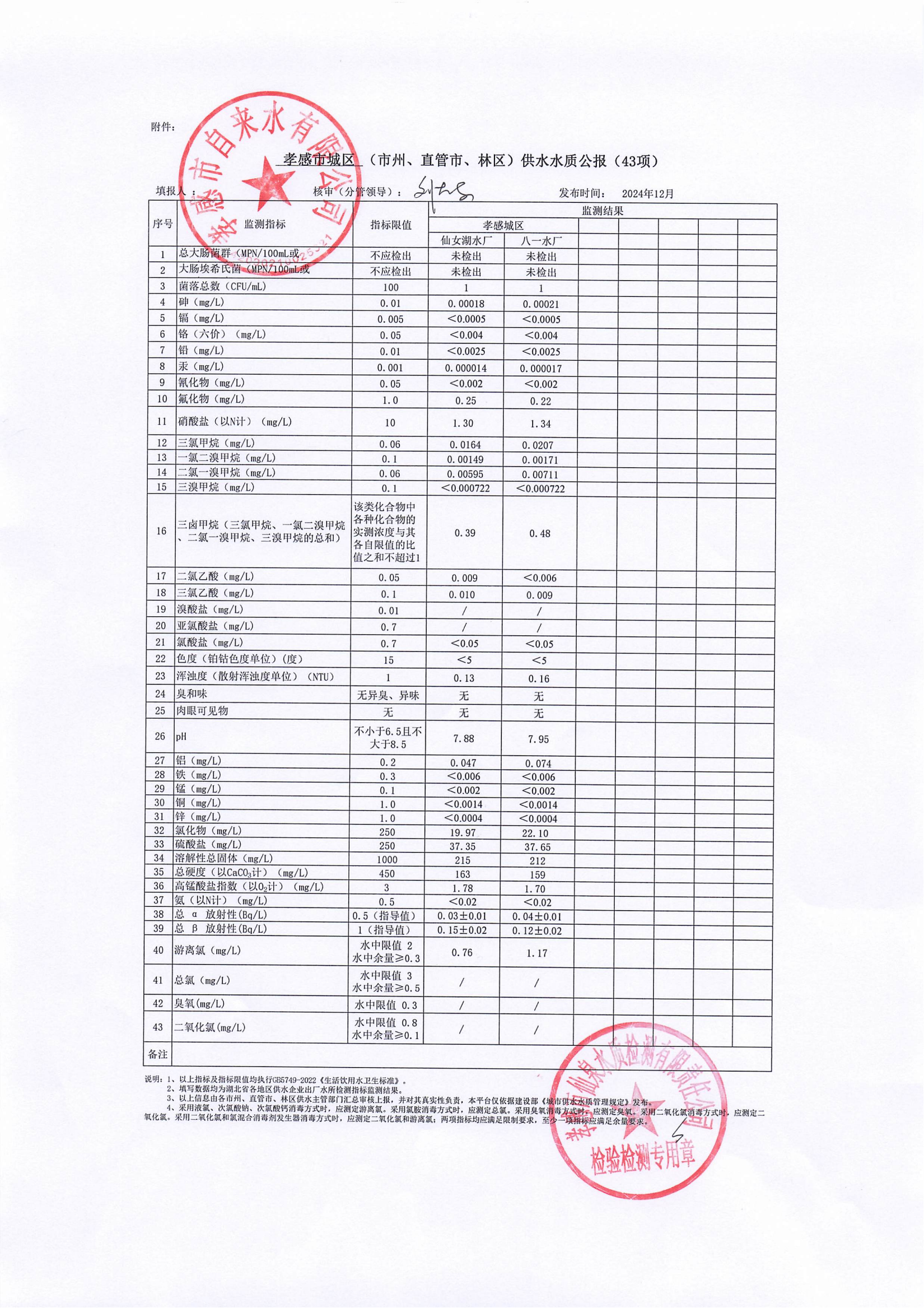 2024年12月水質(zhì)報告