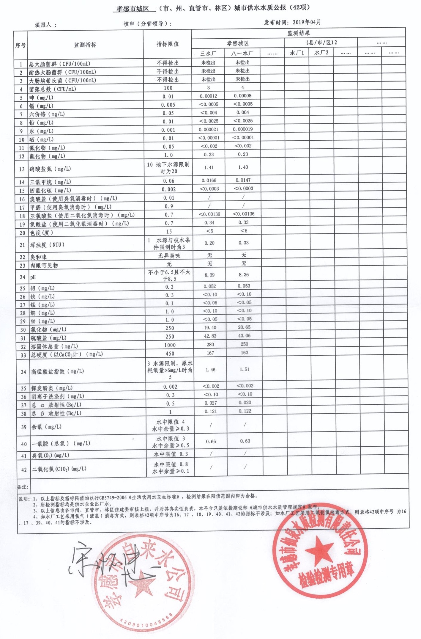 2019年4月水質報告