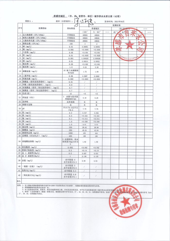 2021年4月水質(zhì)報(bào)告